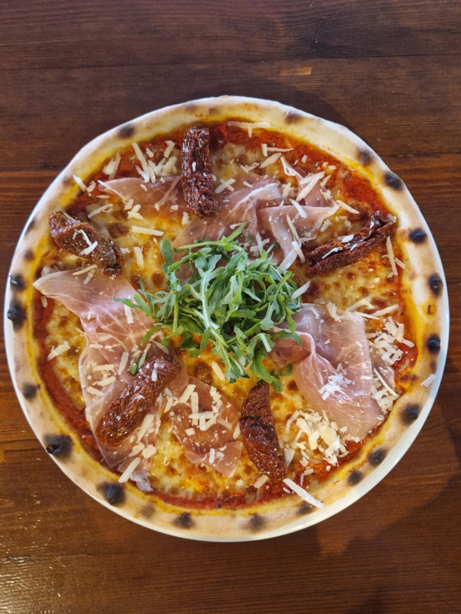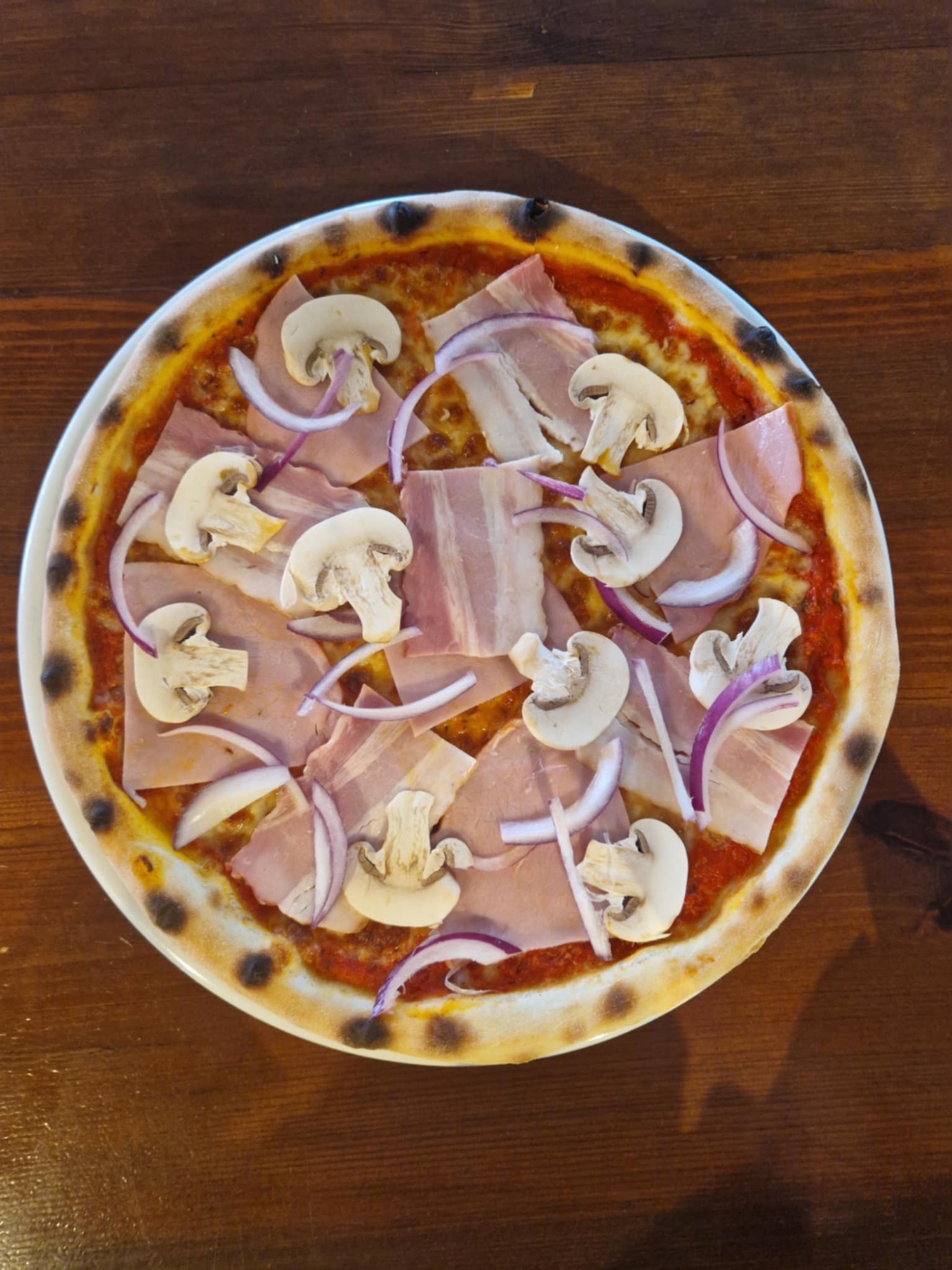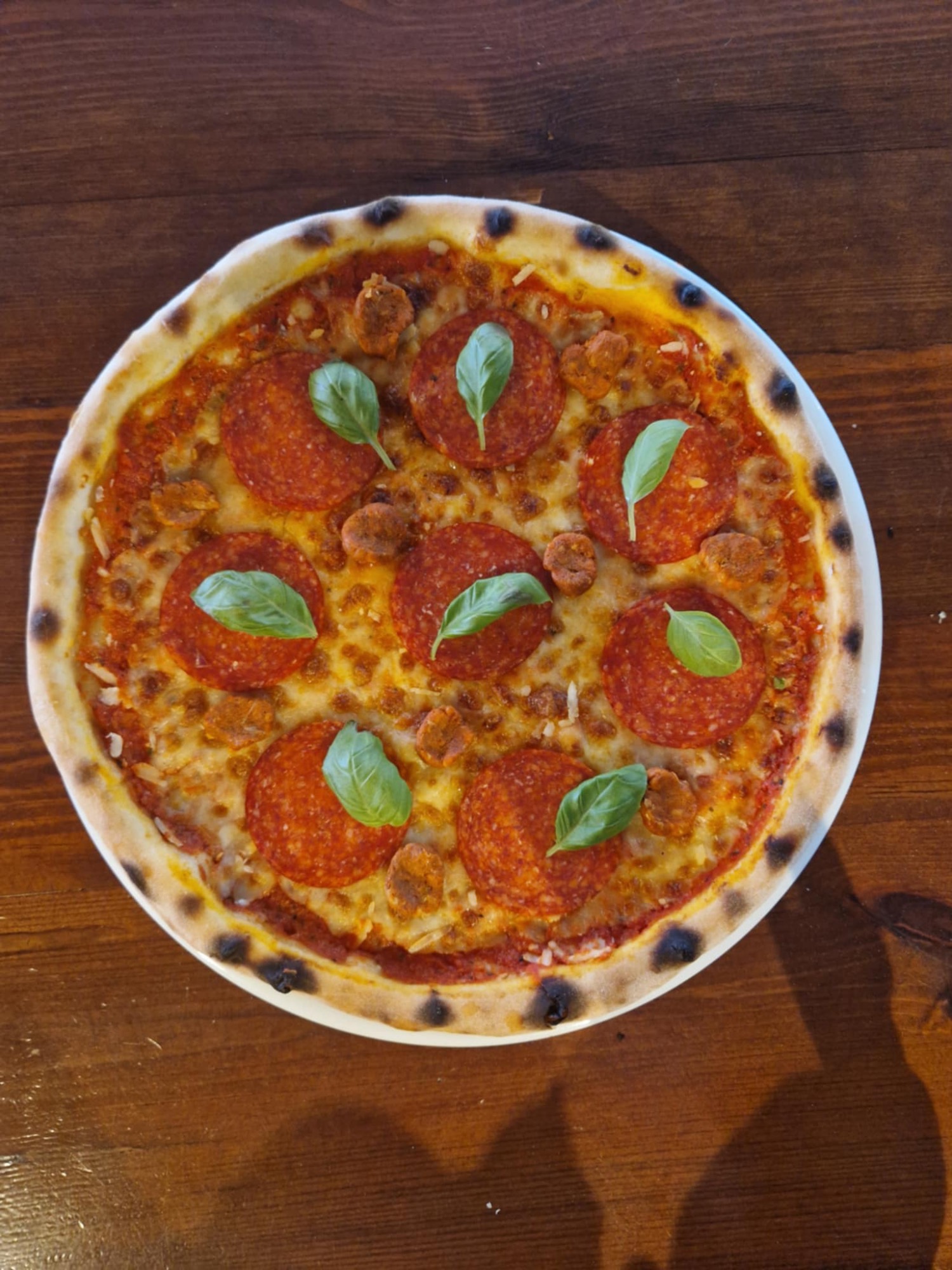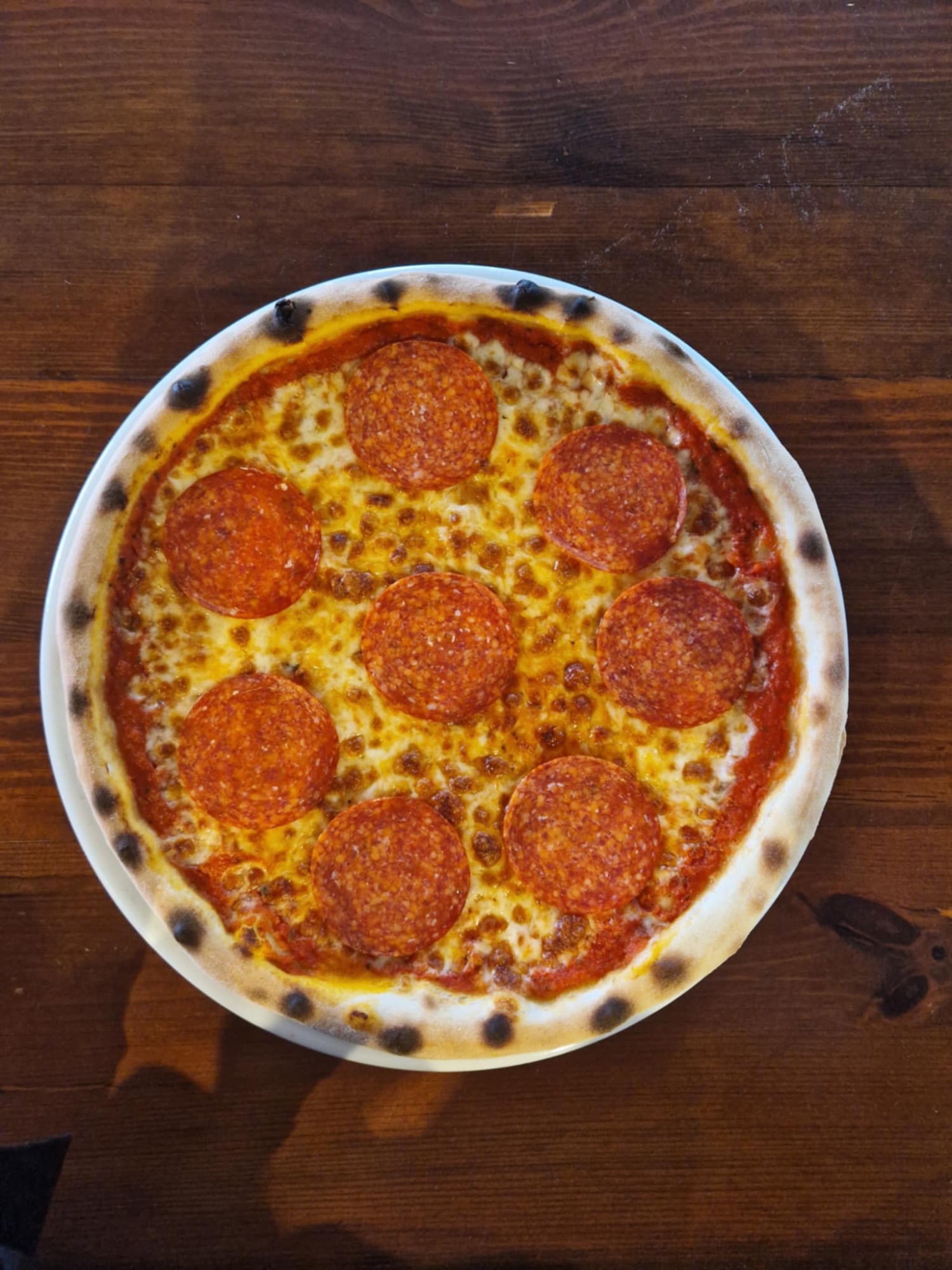 sos pomidorowy, ser mozzarella, salami, czosnek, kapary, łagodna papryka peperoni, cebula