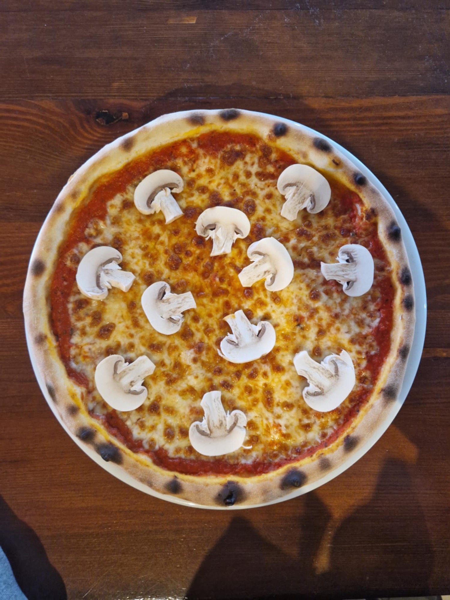 sos pomidorowy, ser mozzarella, pieczarki -